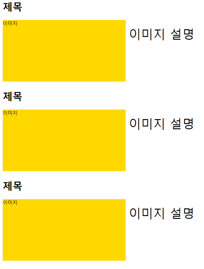 제목과 이미지 그리고 해당 이미지에 대한 설명이 한쌍으로 된 레이아웃이다.
