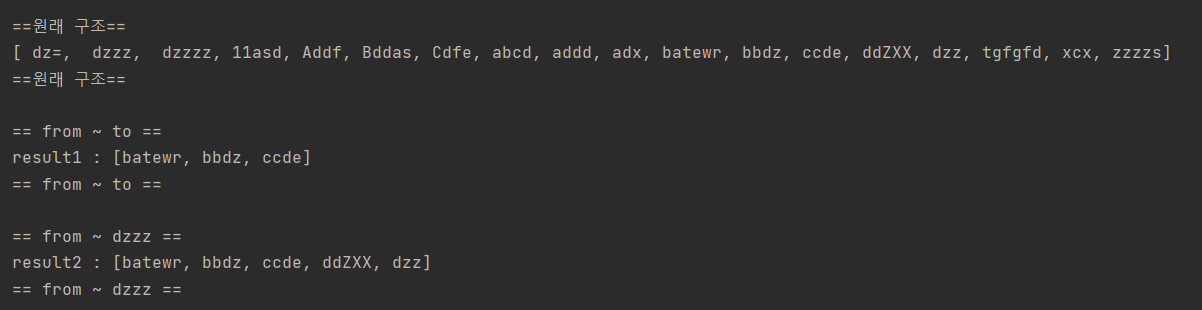 System.out.println("result2 : " + set.subSet(from, to + "zzz"));