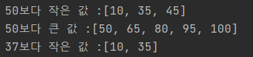 그래서 요소들의 첫글자를 검사하여 b 이상 d 미만인 문자열들만 추려낸다.