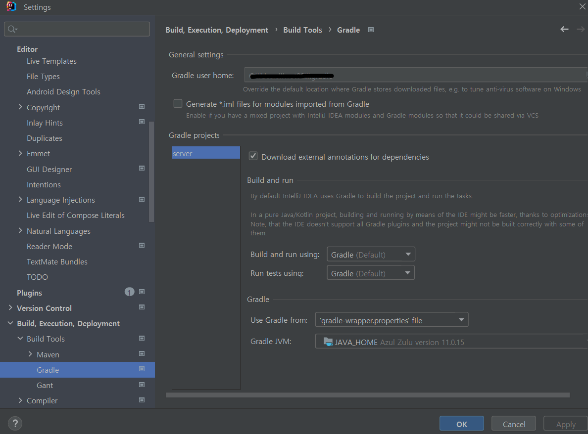 즉, intellij 내부적으로 빌드, 컴파일 할때의 java 버전과 gradle로 빌드, 컴파일 할때의 java 버전이 다른듯하다..