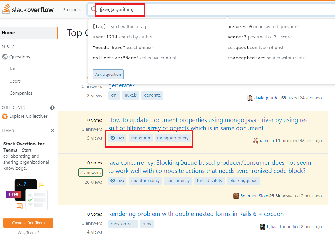 그런데, 사용자가 태그로 질문 검색시